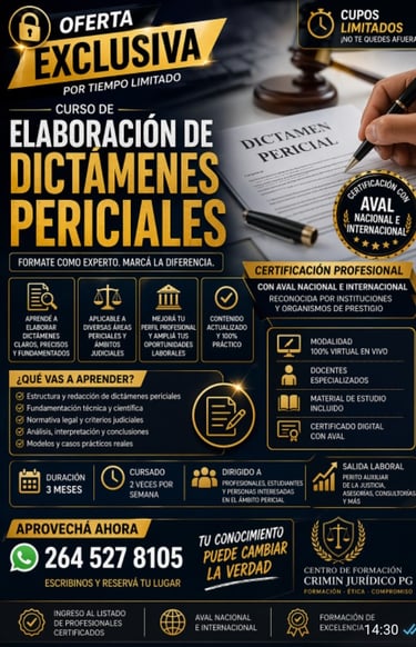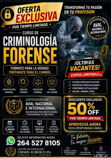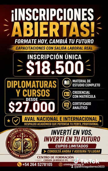 En Centro de Formación Crimin Jurídico P.G. contamos con más de 10 años formando profesionales con capacitaciones modernas y orientadas a la salida laboral real.